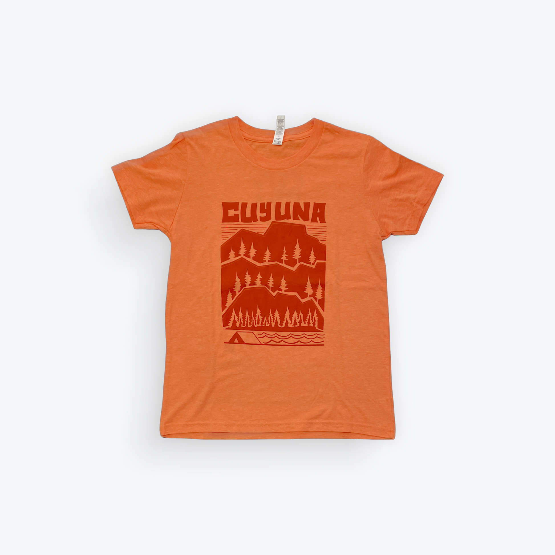 Get the perfect souvenir for your little explorer with our Cuyuna Outfitters Kids' Mountain Tee! Available in green, blue, or orange, this original design is reminiscent of the bike trails and is made with a comfortable cotton/polyester blend. Inspire a love for adventure in your child with this one-of-a-kind t-shirt.
