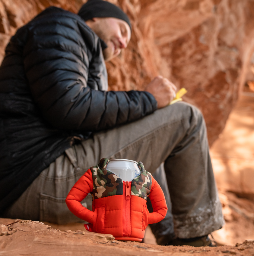 Your essential wardrobe item now has a matching sidekick—because you deserve a cold beverage, and your drink deserves to look cool. Enter the puffy. With several colors to choose from, you and your drink might even find a matching combo. Talk about a power couple. Fits 12 oz cans well.